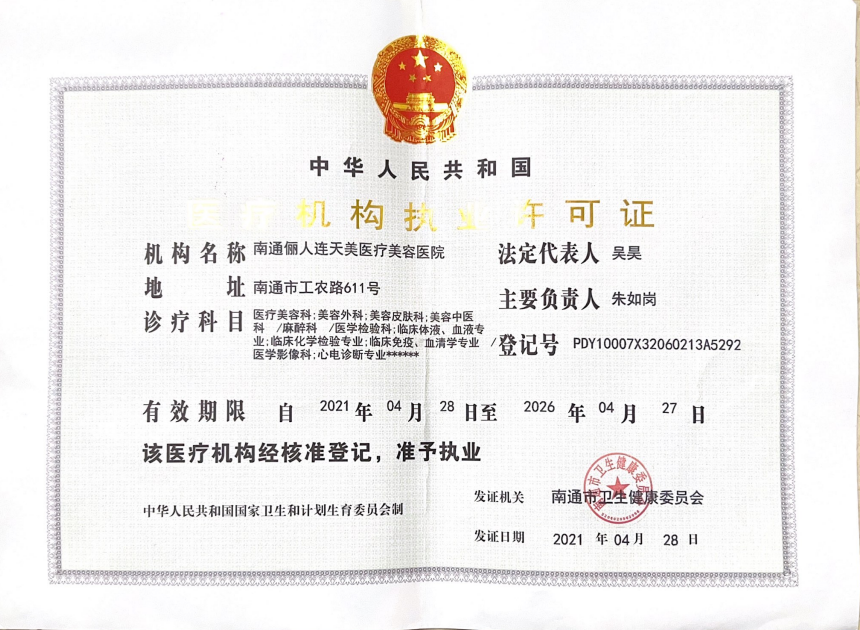 南通儷人連天美醫(yī)療美容醫(yī)院是與著名的醫(yī)療美容集團合作建立的醫(yī)院,醫(yī)院提供高品質(zhì)的醫(yī)療美容服務。2008年,南通儷人連天美醫(yī)療美容醫(yī)院落戶南通,成為由南通衛(wèi)生局審批的專業(yè)醫(yī)療美容醫(yī)院。南通儷人連天美醫(yī)療美容醫(yī)院,特別設有專業(yè)的整形美容科、皮膚美容科和微創(chuàng)美容科三大科室,致力于為廣大求美者提供全方位的醫(yī)療美容服務。南通儷人連天美醫(yī)療美容醫(yī)院為求美者建立個人終生美麗檔案,一對一進行細致服務。 11年來,南通儷人連天美醫(yī)療美容醫(yī)院,不斷引進先進設備,不斷完善醫(yī)美技術,一批優(yōu)秀、專業(yè)而穩(wěn)定的醫(yī)生團隊,為無數(shù)求美者鑄就美麗夢想。